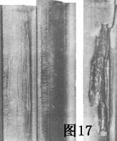 圖18是齒輪的典型疲勞缺陷,其特點(diǎn)是有光滑的地方.它是由重的載荷或震動載荷(不正確的換檔和操縱離合器)造成的。