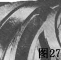圖28所示硬化齒輪起棱可能是由于超載荷造成的。